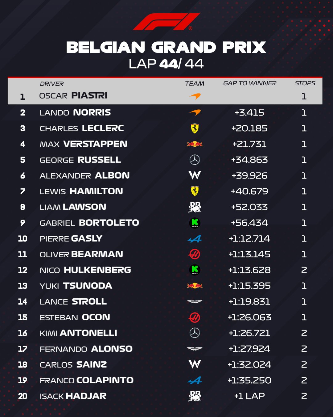 Clasificación GP BELGICA